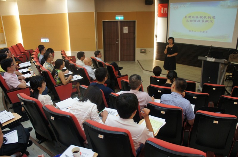 为进一步深入了解台湾地区财政体制、国税税收制度、税收管理、赋税制度以及地方税收制度、税收管理情况,19日至22日,调研团先后到台湾地区“财政部国库署”、台北市国税局、“财政部赋税署”和台北市税捐稽征处实地参访调研。所至之处,均受到热烈欢迎和认真的接待。台湾“财政部国库署”署长凌忠嫄女士、台北市国税局长何瑞芳先生、“财政部赋税署”署长吴自心先生、台北市税捐稽征处副处长张碧珠女士亲自带领有关人员迎候,主持座谈交流会,并详细介绍本部门相关职能、制度、政策、工作等情况。同学们结合自身的税务工作实践以及两岸税收制度存在的差异,抓住难得的机会,踊跃提问,认真请教,积极讨论。四场参访交流会氛围热烈,让师生们收获颇丰。在台北市国税局、台北市税捐稽征处的实地参访中,师生们还分别参观了办税服务柜台,实地感受台北国税和地方税务部门的办税服务情况。其优良的硬件设施、温馨体贴的服务措施、整洁的办税环境、优质的服务水平,给师生们留下了深刻印象。