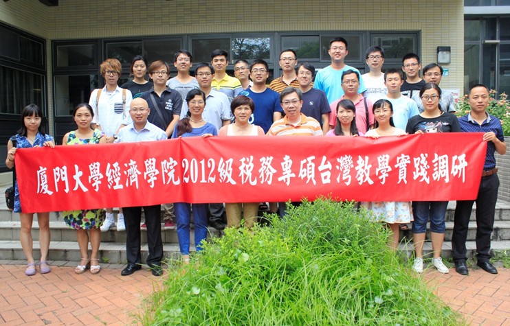 为提高税务专硕学生的实践能力,增进对台湾税收形势、税收制度、税收征管和税收文化的了解,增强对台税务问题的处理能力,办出我校税务专硕的特色,在学校研究生院、经济学院和财政系的大力支持下,在台湾政治大学的帮助下,2014年8月17日至24日,2012级税务专业硕士一行20人赴台湾开展了为期一周的税务教学实践调研活动。此行由财政系主任童锦治教授、研究生院李敏利老师和财政系魏志华副教授带队。